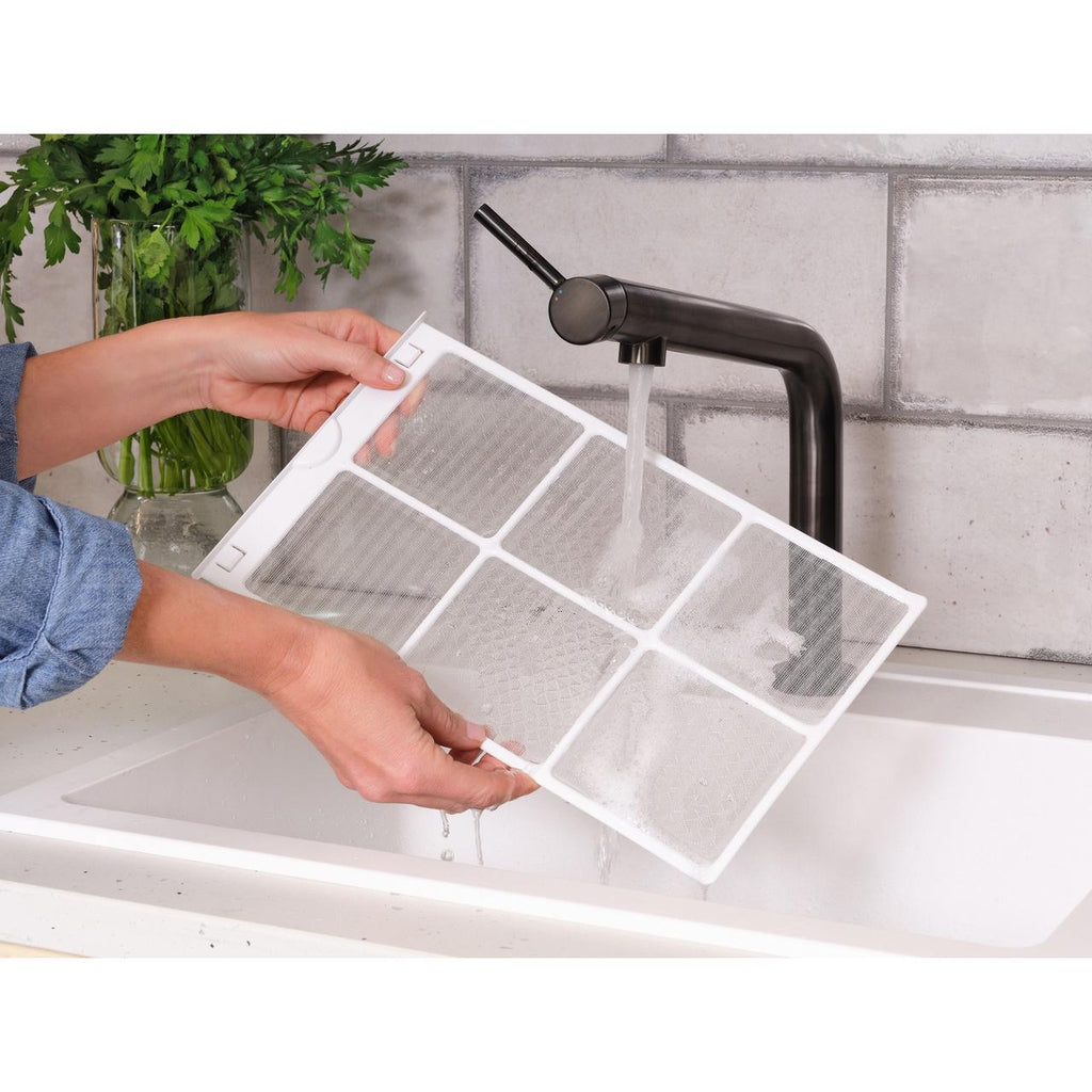 Easy to remove and rinse clean, the filter helps remove dust and other particles from transmitting in the air—providing a cleaner environment.